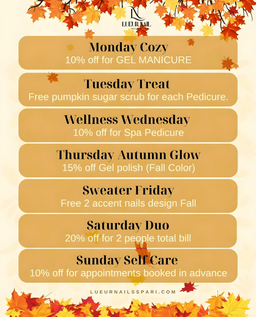 At Lueur Nails & Spa, we offer a carefully curated menu of nail services designed to bring out your natural beauty while indulging you in pure relaxation. From classic manicures and pedicures that refresh and rejuvenate to advanced nail enhancements like acrylics, gels, and dipping powders, our treatments cater to all your needs. Want something unique? Explore our custom nail art, where creativity knows no bounds. Our skilled technicians use premium products and stay updated on the latest trends, ensuring your nails always look flawless and stylish. Whether it’s a simple, polished finish or an intricate design for a special occasion, we’re dedicated to delivering impeccable results that leave you feeling confident and elegant.